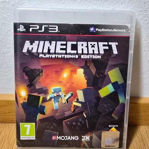 Minecraft Playstation 3 -peli. Pelin ikäraja on 7 vuotta. Peli on fyysinen levyversio Playstation 3 -konsolille.