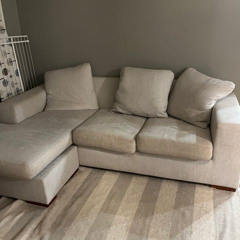 Annetaan nahkasohva. Istuinosa ja käsinojat nahkaa, tausta tekonahkaa. Istuinosan syvyys 55 cm. Selkänojan tyynyjen liitoskohta revennyt(kuva), kenties korjattavissa.