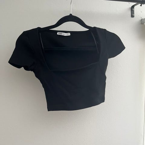 Hyväkuntoinen naisten musta lyhyt toppi. Koko: XS.