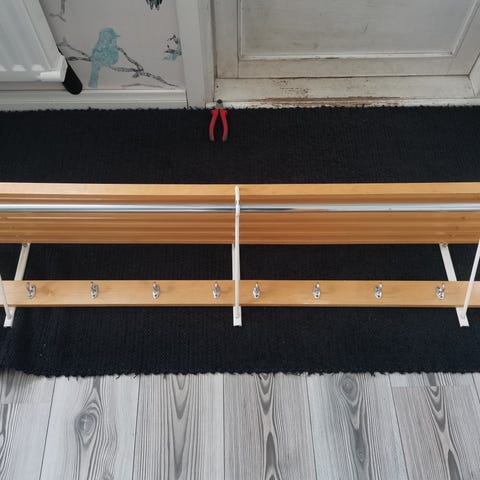 Upea vintage hattuhylly / naulakko. Tukevaa tekoa. Leveys noin 145cm, syvyys noin 34cm.