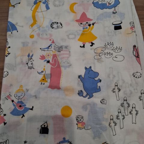 Muumi-kangas. Pituus 290 cm, leveys 150 cm. Käyttämätön. Vihreä. Finlayson.