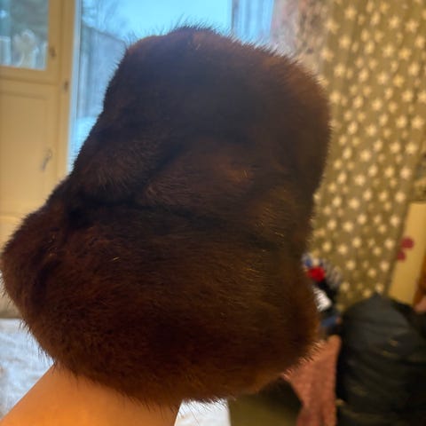 Lämmin ja kaunis minkin turkista tehty korvaläppä. Koko naisten, vaaleanruskea, mokkanahkaa sisältä. Vähän vain ollut käytössä. Pituus kokonaisuudessaan 49 cm.