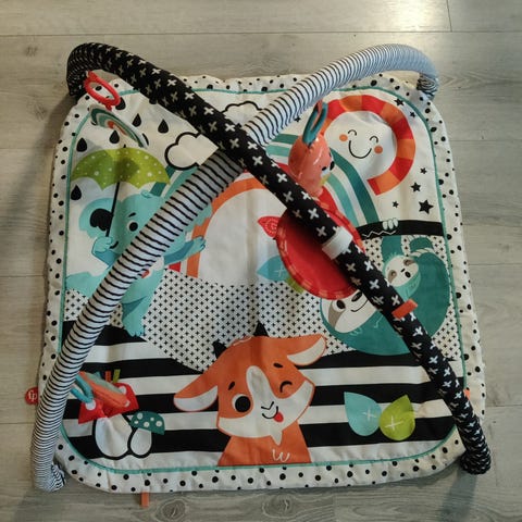 Ylös nostettavien reunojen ansiosta leikkimatto luo lapselle turvallisen tilan leikkiä ja antaa vanhemmille mahdollisuuden saada hetken aikaa itselleen tai kotitöihin. Maton voi pestä pyykinpesukoneessa.