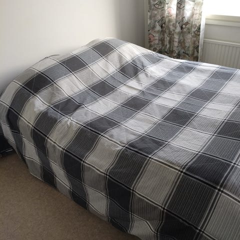 Vähällä käytöllä ollut Asko Bonnellin harmaa paksu päiväpeitto. Koko 160x230