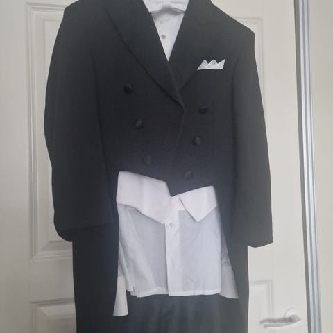 4v lapsen frakkisetti, valkoinen paita kohtalainen kunto.