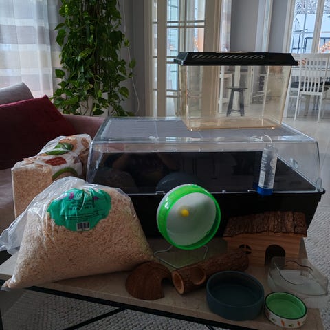Itse rakennettu hamsterin duna muovilaatikko.