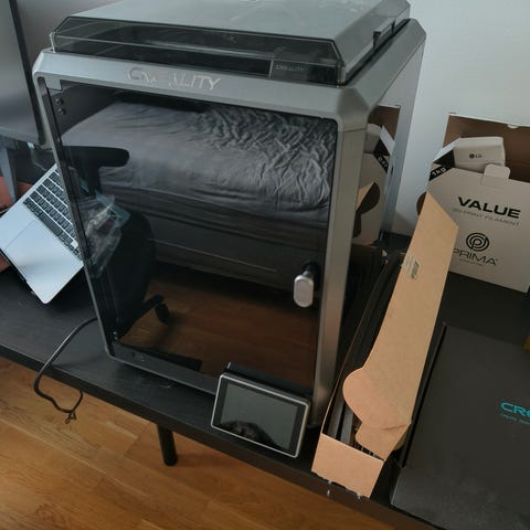 Creality K2 Plus 3D-tulostin filamenttikuivaimella, CFS-järjestelmällä ja runsaalla määrällä ylimääräistä filamenttia myytävänä.