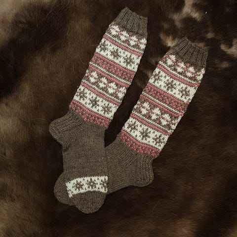 Käsityönä tehdyt sukat. Väri vanha roosa.