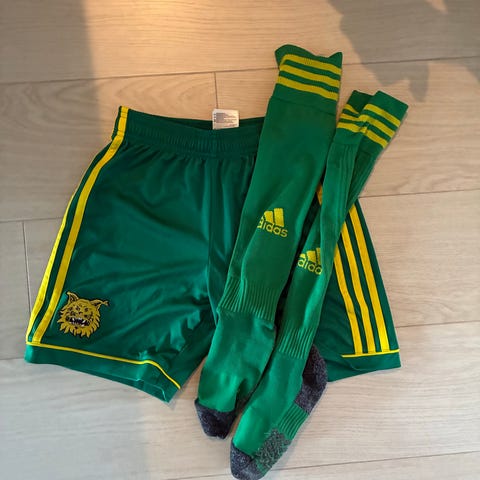 Ilveksen joukkueshortsit (Adidas) ja sukat keltaisena. Koko L (UK 13-14Y, US 14Y, CN 160). Sopii n. 150c-160cm käyttäjälle. Myydään settinä.