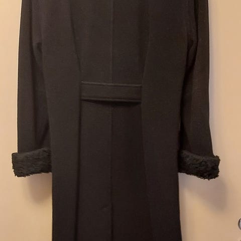 Käytön puutteessa myyntiin pystykauluksellinen, hieman alaspäin levenevä musta 100% puhdasta uutta villaa oleva kotimainen Femitex merkkinen pitkä takki. Olka/ helma pituus 112 cm. Vähän käytetty ( kaksissa hautajaisissa ) kunto kuin uusi.