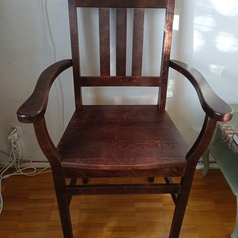 Seniorituoli: siisti, pyörät edessä, pyökkinen, pitkät käsinojat taakse.