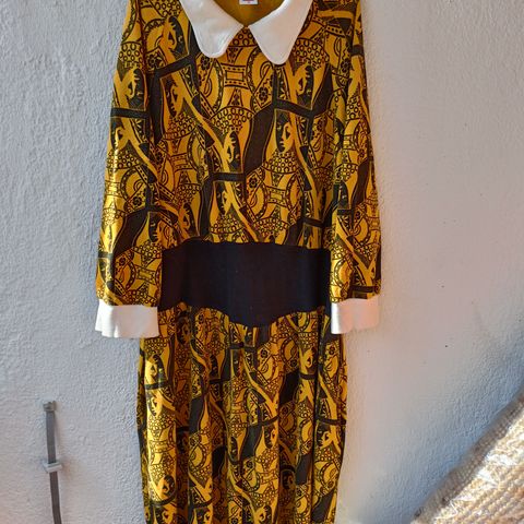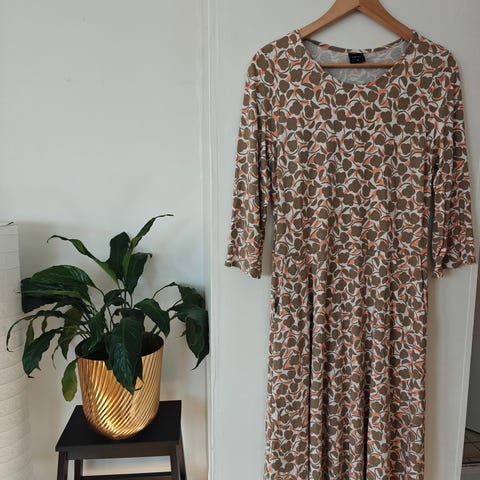 Nanson kukkakuosillinen beigen, valkoisen ja mustan värinen mekko / tunika koossa XL. Laput niskasta leikattu pois, muutoin erinomainen siisti kunto!