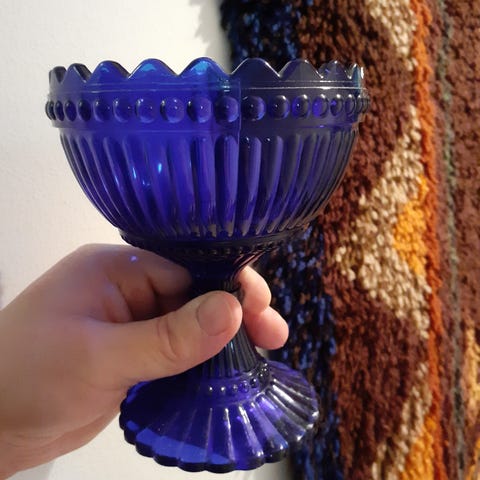 Vintage Mariskooli paperitarralla. Yritin googlailla, niitä ilmeisesti käytettiin ennen silkkitarroja? Luullakseni tämä on 60/70-luvulta. 15 cm korkea. "Varpaissa" yhteensä kolme lohkeamaa (kuvat). Sisällä jotain pinttynyttä likaa/kulumaa. Ei kuitenkaan mitään silmiinpistävää vikaa, ikäisekseen hyvässä kunnossa. Tarkempi puhdistus jää ostajalle :)