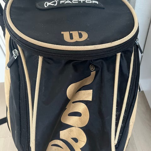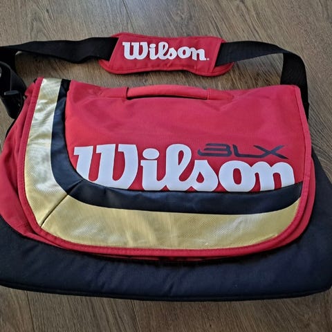 Wilson 70L tenniskassi, punainen väri. Kassi on tuleva ja vettä hylkivä ja siinä on useita vetoketjullisia lokeroita (4kpl) ja kylmätasku juomille. Sopii tennismailojen ja varusteiden kuljetukseen. Voi kantaa selässä reppumaisesti tai olalla. Tilaa 4-5 mailalla, kengille ja muille varusteilla.