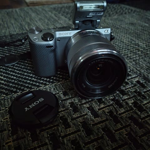 Sony NEX-5n tarvikkeineen