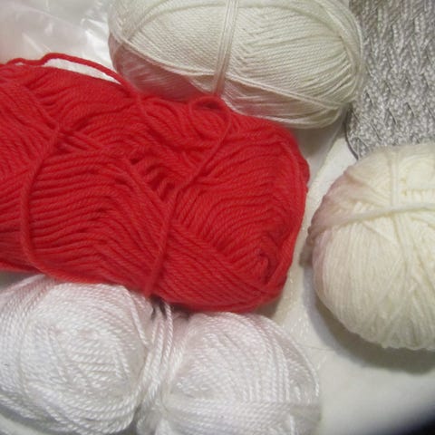 Annetaan yli kilo erivärisiä lankoja. Langat ilmeisesti keinokuitua.