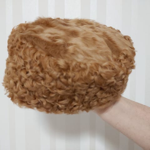 Vintage lampaankarva hattu, lakki. Vuori ja reunanauha sisällä.