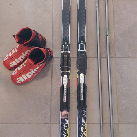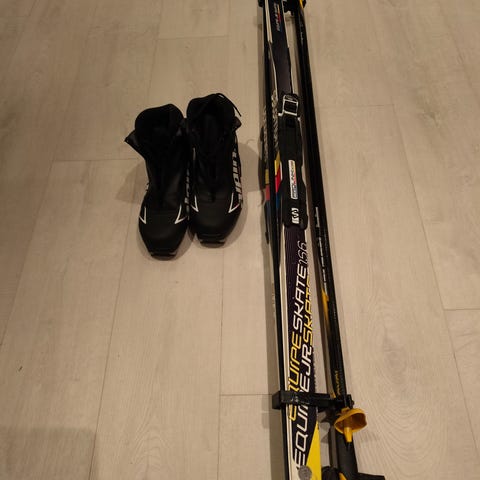 Tosi vähän käytetyt, suksissa on hyvät kantit ja ne on kevyet. Kevyttä naarmua pohjassa mutta ei mitään isompaa. Sauvoissa on hiilikuitua 60% korkkikahvat ja rannetuelliset hihnat, ovat uutta vastaavat.