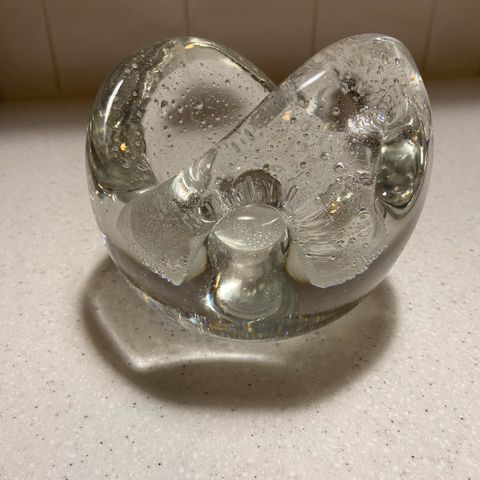 Hiidenhelmi, 6 cm. Kulunut signeeraus, josta erottaa 'Timo Sarpaneva Iittala'. Helmessä kaksi erittäin pientä kuplaa, näkyvät kuvassa.