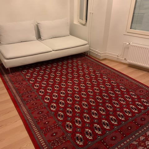 Itselläni on kaksi samanlaista mattoa, joista toisen myyn muuton myötä tarpeettomana. Ihana ja helposti imuroitava, pehmeä ja lämmin matto. Ja super kaunis. Pesu tai mahdollinen puhdistus jää ostajalle.