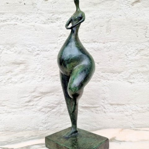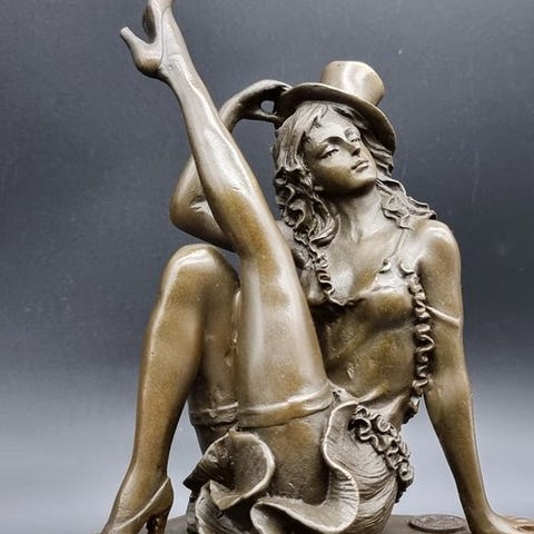 Käsintehty pronssiveistos revyy-tanssijasta täydellisin yksityiskohdin.