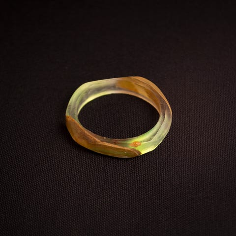 Myyntiin uniikki, kotimaista käsityötä oleva punainen vaahtera-hartsi sormus.