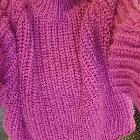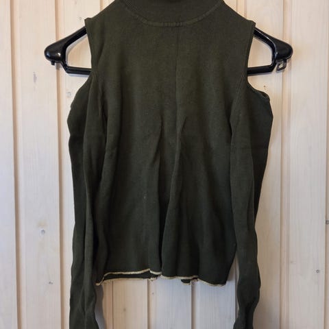 Lindexin metsänvihreä neule, väljä rento malli, löysä poolokaulus, takaa pitempi kuin edestä, helman sivusaumoissa kivat halkiot.