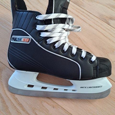 Pulse 4 Jääkiekko luistimet, koko 36. Mustat. Varustettu Aero Light Weight terillä, jotka tarjoavat kevyen ja kestävän käytön. Teroitettu, joten ei muuta ku jäälle näillä!