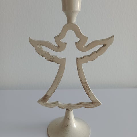 Posliininen/keraaminen enkeli koriste, kynttilänjalka. Hyväkuntoinen ja siisti, Jotain pientä käytön jälkeä näkyvissä