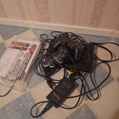 Playstation 2 pelikonsoli+ohjain ja muistikortti. Pelikonsoli testattu ja toimii, yhtä johtoa hieman vahvistettu teipillä. 50€