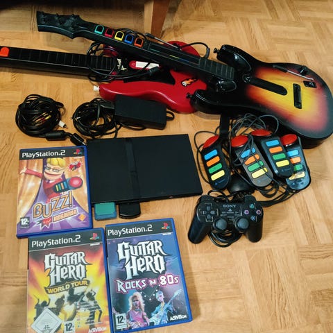 Myydään playstation 2 slim pelikonsoli, buzz peli ja ohjaimet, sing it-peli ja mikrofonit sekä 3kpl gta pelejä. Pakettina tai erikseen.