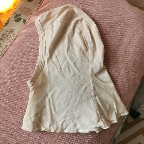 Hyväkuntoinen silkkimyssy. Ei huomautettavaa kunnossa. Koosta en ole ihan varma, onko pienin koko vai toiseksi pienin, mutta voin tarvittaessa mittailla.