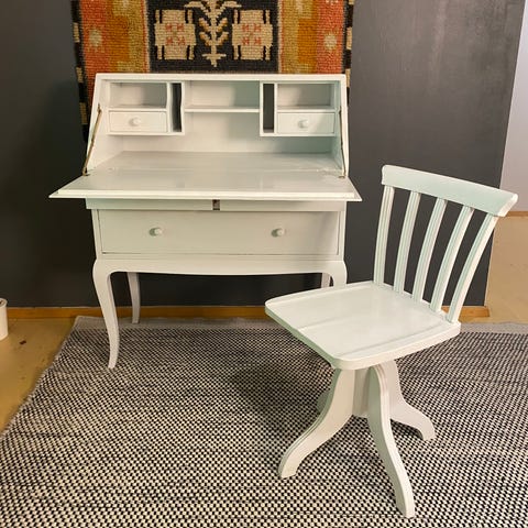 Vankka, tukeva ja painava. Olen pöydällä pitänyt ompelukonetta sekä käyttänyt tietokonepöytänä eli kestää käyttöö ja painoa. Pöytälevyn ja sen kannattimet saa myös irrotettua helposti, jos haluaa käyttää sekretääriä ilman isoa pöytälevyä esim. sivupöytänä / laskutasona tms.