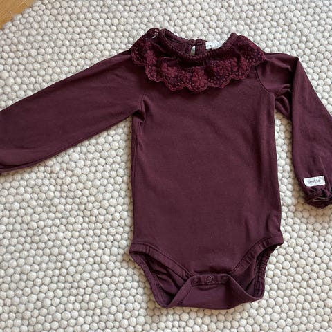 Kaunis Newbien ribbibody, jossa frillasomisteet olkapäillä ja pienet pitsit hihansuissa. Lähes uutta vastaava kunto, haarasta nepparien vierestä bongasin minireiän, joka toki jää käytössä piiloon.
