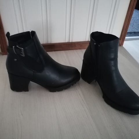Karvavuorelliset mokkapintaiset nilkkurit. Lämpimät, hyvät ja tukevat jalassa. Pitävä pohja, ei liukkaat. Korko 9cm.