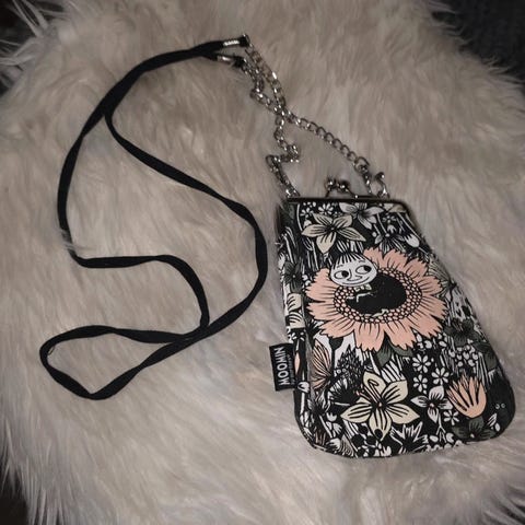 Kuvanmukainen käyttämätön muumikuvioinen laukku sivutaskulla.Säädettävä hihna.Tarjousten perusteella.Kerro heti viestittäessä milloin nouto käy!