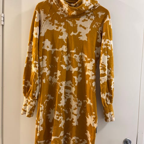Tämä on sitä paksumpaa Ommellisen merinovillaneulosta parin vuoden takaa. Poolokaulus, sivuissa halkiot, ns. tunikamitta.