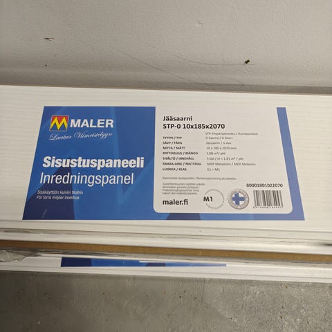 Myynnissä rakennusprojektitsta ylimääräiseksi jäänyttä ET LISTAT Oy MDF-Paneeli 10x150x2780 mm STP Valkoinen (1,90m2/pkt, 5kpl/pkt) yhteensä 7 pkt eli 13,3 m2.