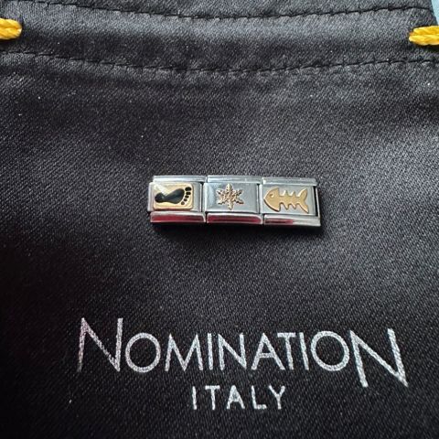 Nomination rannekorut ja erikoispalat. Kaikki olleet käytössä ja käytön jälkiä näkyy, kuitenkin ehjiä. Erikoispalat hintaan 9€/kpl ja teräksiset palat 50snt/kpl tai 10kpl/4€.