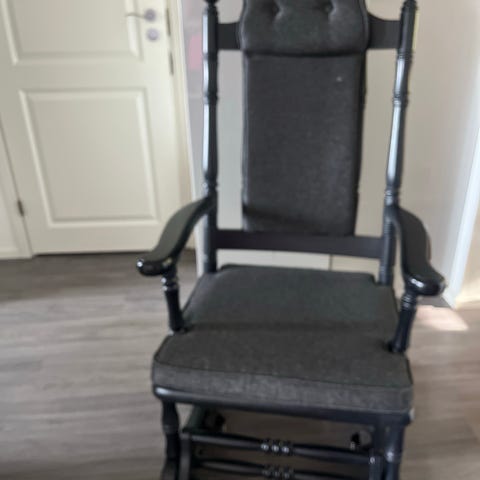 Suomalainen Urjalan Dallas -keinutuoli. Toimiva ja hyväkuntoinen. Laadukasta tekoa, runko vankkaa koivupuuta. Keinuu hyvin, ei nitise. Neutraali yksivärinen pehmuste sopii monenlaiseen kotiin.