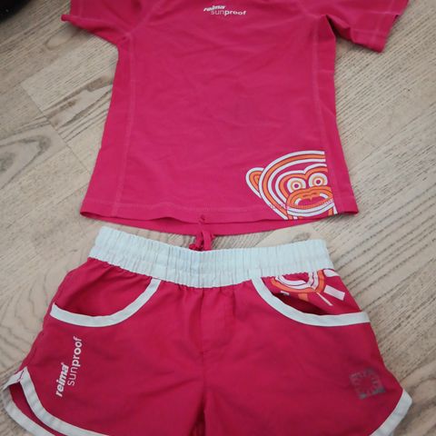 Uv-asu on Kappahl merkkinen, takapuolessa pieni jälki josta lisäkuva. En ole kokeillut sappisaippuaa. Myös Reima hatun niskasuojassa huomasin jälkeä kun hatun nosti valoa vasten. En ole kokeillut tahranpoistoa tähänkään. Muuten tosi siisti setti. Voin mvös kokeilla poistaa jos ostaja haluaa, jäänyt todennäköisesti aurinkovoiteesta. Eläimetön ja hajusteeton koti. Hp. 20eur