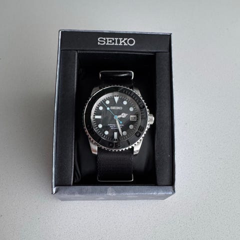 Myynnissä todella vähän käytetty Seiko 5. Ostettu Keskisen kellosta ja kaikki mitä myyntipaketissa oli löytyy. Kunto todella hyvä, hihnan metalliosassa pieni pöytähankauma, mutta kellossa ei mitään. Aikoinaan ostin kun ajattelin modata, mutta oli sen verran hieno, että en tehnyt mitää muutoksia. Jäänyt vain käyttämättä ja nyt tästä jollekkin hieno kello.
