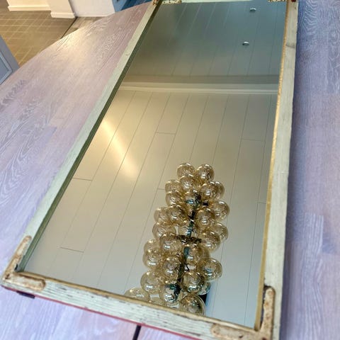 Peilin koko on noin 1258mm korkeutta ja 468mm leveyttä. Kehyksen paksuus 45mm.Peilissä on kolme osaa, ja sen voi asentaa pystyyn tai vaakaan. Takana on ripustusnaru seinään kiinnittämistä varten pystyasentoon. Tummaksi patinoitunut pinta, voi myös hioa ja maalata minkäväriseksi haluaa. Voin lähettää, mutta mieluimmin nouto