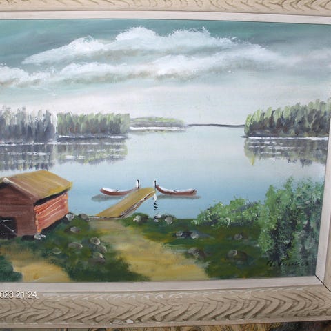 Hieno syksyinen maisemamaalaus. Signeeraus -75. Pohjoismaissakin arvostettu Ateneumin matrikkelimaalaaja. Ei mikään taiteilijayhdistyksen hyväksymä tavistaiteilija... Asiantuntijan arvio n. 600€ Koko: n. 90x60cm