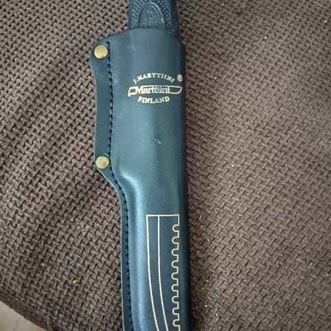 Hyvässä kunnossa ja terävä. Nahkainen tuppi mukaan. Terän pituus noin 12cm