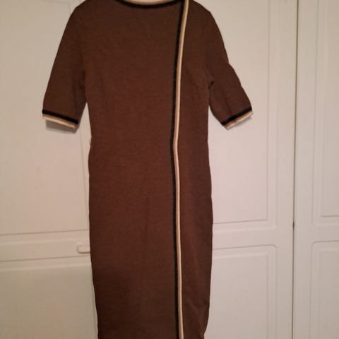 Vuorellinen villamekko n.60/70-luvulta (Kaunotar by Finnfashion). Kokomerkintä 36, mitat kai-kai n.41 cm, olka-helma 102 cm, hihan pituus olkasaumasta mitattuna 53 cm, selkäpuolen vetoketju 52 cm. On aikoinaan varmaankin käytetty, mutta siistikuntoinen. En valitettavasti mahdu tähän, muuten pitäisin itselläni. Hinta 10 euroa, noudettavissa Espoosta (02760) tai postitus, jolloin postikulut lisätään hintaan. MMM.