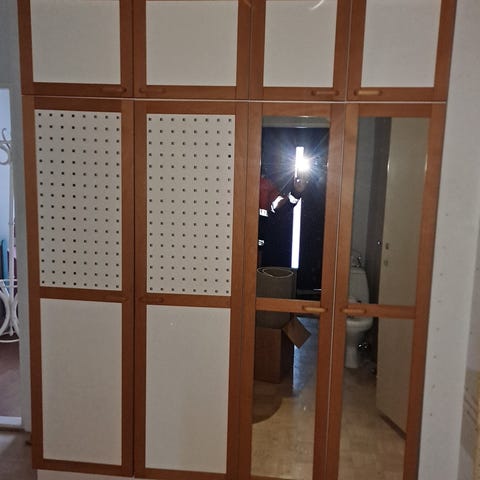 Siisti ja hyväkuntoinen kaappi nosto-ovella. Tarvittaessa kuljetus.