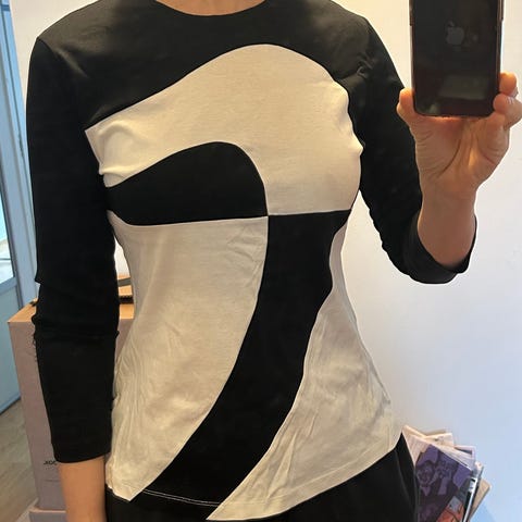 Kauniit helmiäisnapit ja hienot puhvihihat.