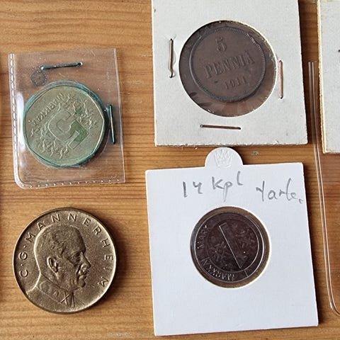 Erilaisia vanhoja kolikoita kokoelma markat