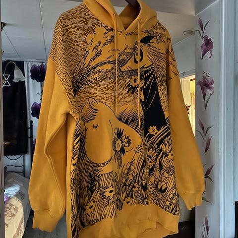 Hyväkuntoinen muumi huppari koko L kainalo-kainalo 65cm Pituus 82cm takaa muutaman sentin pidempi. Nouto onnistuu roihuvuoresta tai postitus en tingi hinnasta